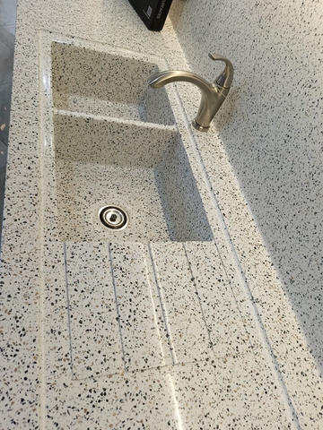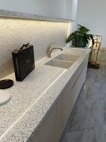 Chậu rửa chén nguyên khối đá solid surface korean màu terrazzo được gia công bởi công ty Sagita cho khách tại quận 2
