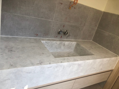 Đá nhân tạo solid surface korean ứng dụng ốp chậu rửa liền mạch, liền khối, sang trọng, vệ sinh dễ dàng được cung cấp bởi công ty SAGITA