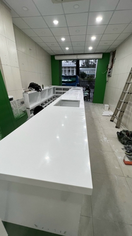 Solid surface korean Himacs S028 Alpine White ốp quầy thuốc cho khách hàng tại quận 3, Hồ Chí Minh