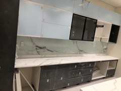 Đá nhân tạo solid surface vân mây đẹp mã LVA 3507 ốp mặt bếp và bàn đảo đem lại sự sang trọng cho không gian bếp