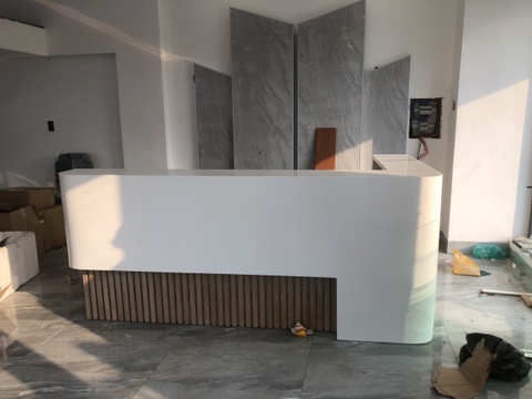 Dự án ốp mặt đá nhân tạo solid surface korean cho quầy lễ tân tại văn phòng khách hàng quận 2 , Hồ Chí Minh