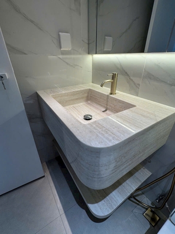 Đá solid surface Himacs M706 Aurora Angora ứng dụng ốp mặt bàn, quầy, đảo bếp, Pantry...