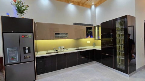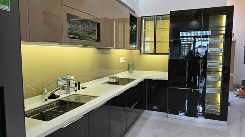 Đá solid surface korean ốp mặt bếp bàn đảo tạo nên một không gian sang trọng, ấn tượng, hiện đại.