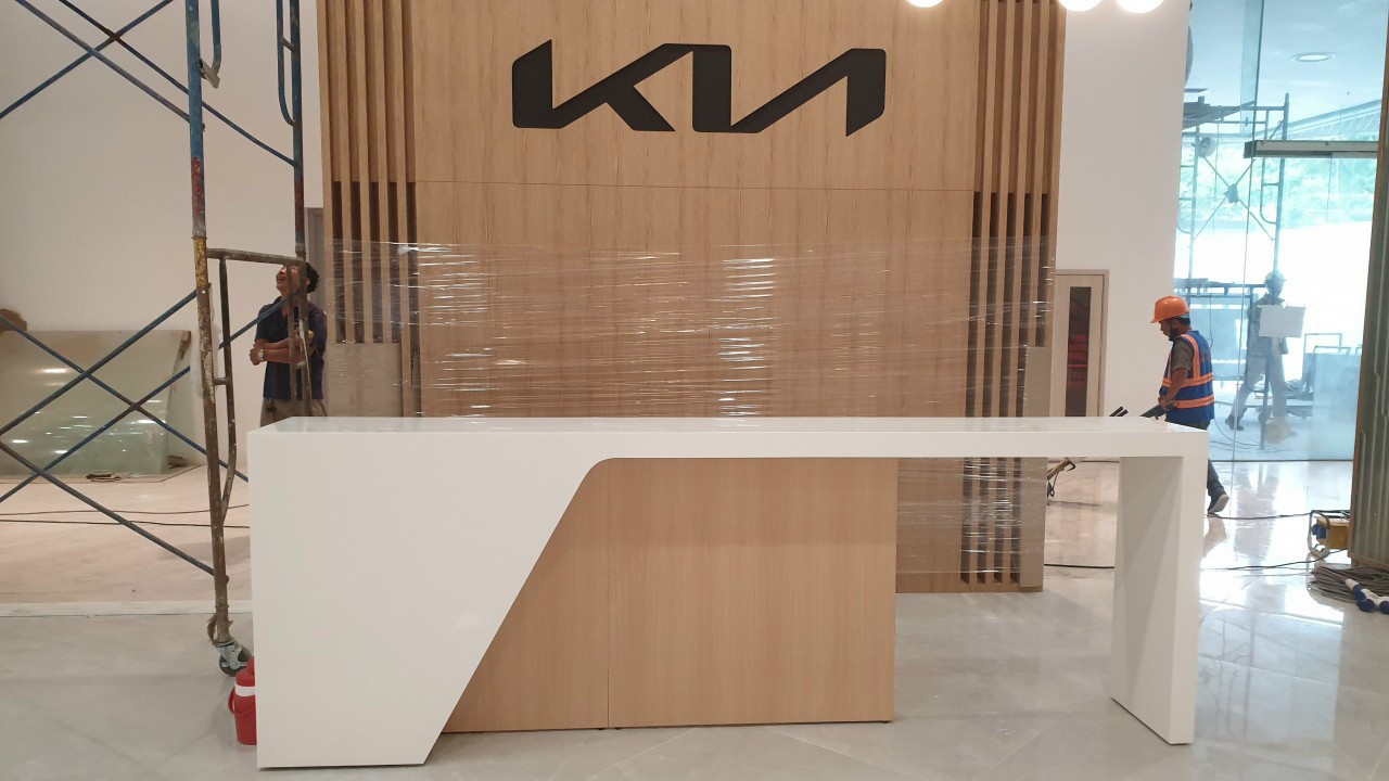 Công ty SAGITA hoàn thiện hệ quầy ốp đá solid surface korean tại showroom xe KIA ở khu đô thị Sala quận 2, Hồ Chí Minh