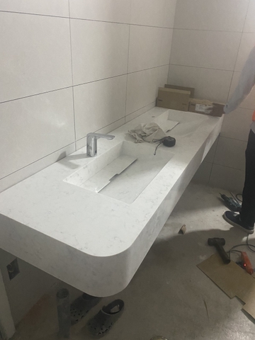 Đá solid surface màu vân mây cao cấp ốp chậu liền khối kiểu dáng hiện đại cho WC tại nhà máy sữa Yakult Bình Dương