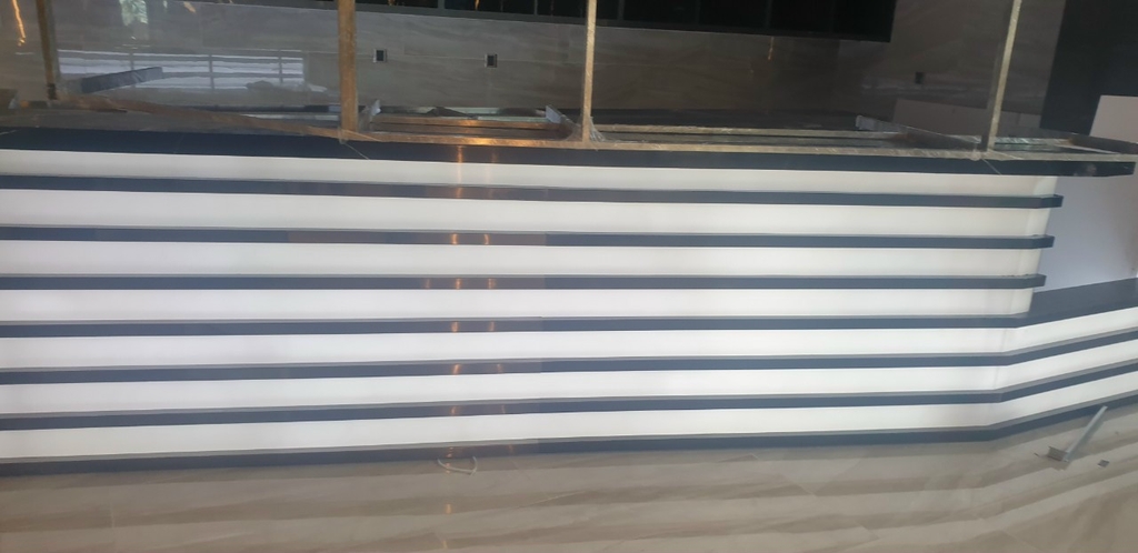 Hoàn thiện mặt đá nhân tạo solid surface xuyên sáng mã s700 lucent white ốp quầy tại Vũng Tàu