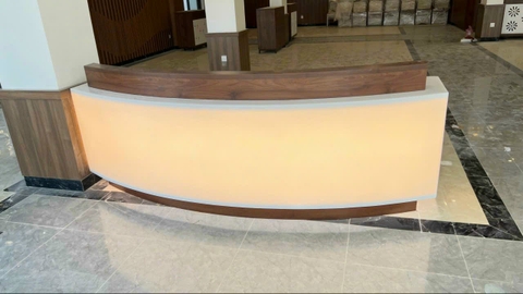 Quầy lễ tân đá solid surface xuyên sáng là 1 điếm nhấn rất hiện đại của văn phòng, khách sạn, nhà hàng, Resort ...