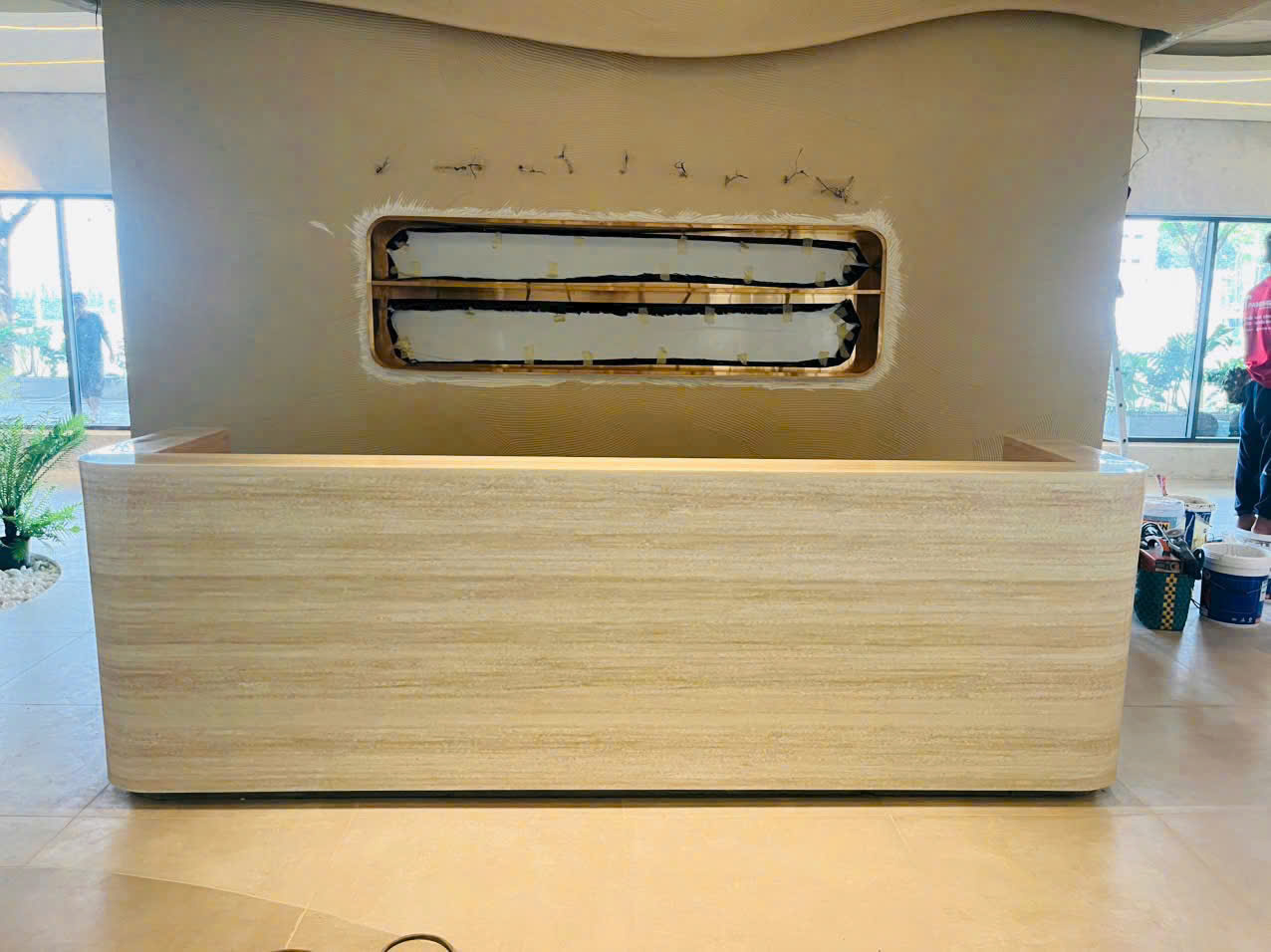Đá solid surface korean ốp quầy lễ tân có nhiều màu sắc phù hợp với ý tưởng thiết kế của Kiến Trúc Sư.