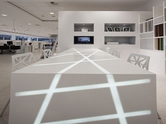 - Đá nhân tạo Solid Surface xuyên sáng có thể sử dụng máy CNC để khoét tạo ra những hình ảnh đặc biệt lên mặt đá sau đó dùng đèn LED đặt cách mặt đá 15cm để tạo ra hiệu quả mờ sáng trên đá rất đẹp
