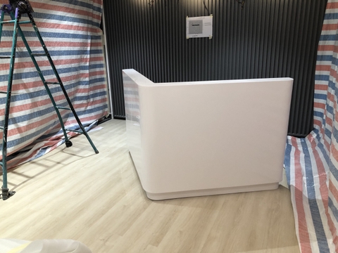 Với tính chất uốn cong liền khối độc đáo, hiện đại của solid surface Korean đội ngũ gia công của Sagita đã hoàn thiện 1 hạng mục Quầy rất đẹp và sang trọng